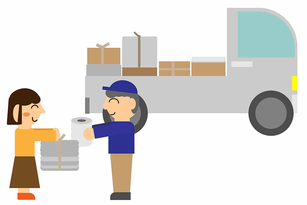 回収日になったら、ご自宅の前、または建物の外に古紙類をまとめて置いていただきます。